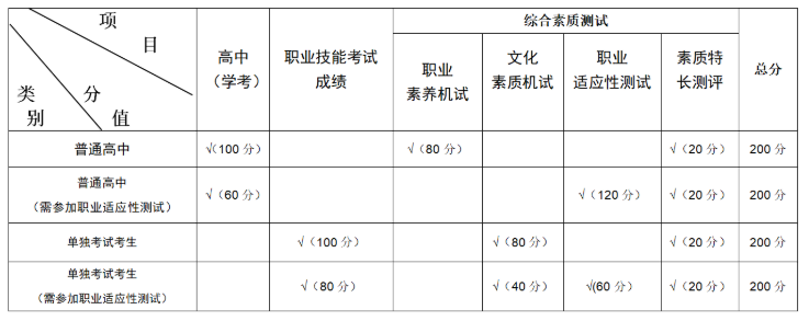 (1)学校根据考生的高中学业水平考试成绩、浙江省高校招生职业技能考试有效成绩,以及按招生专业要求组织综合素质测试进行评价