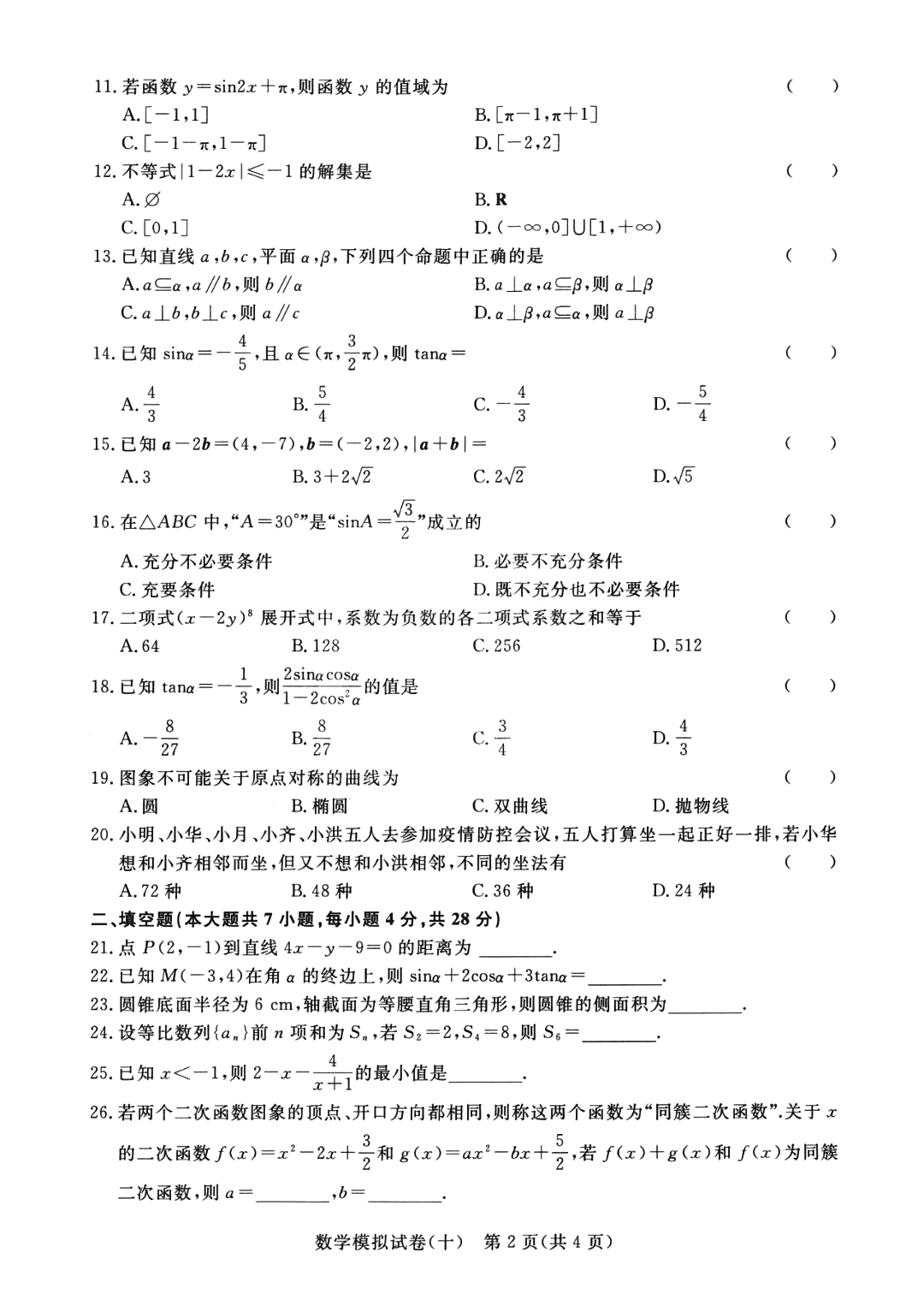 您现在的位置: 浙江高职单招网 >  真题资料 > 数学  > 浙江单独考试招生文化考试数学名卷(十)